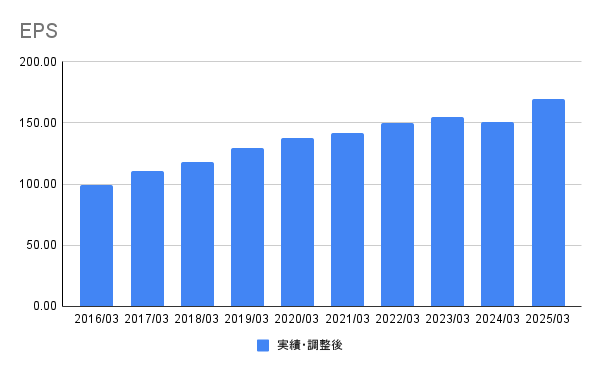 • 安定した利益成長:EPSの成長が続き、今後も増益が期待できる