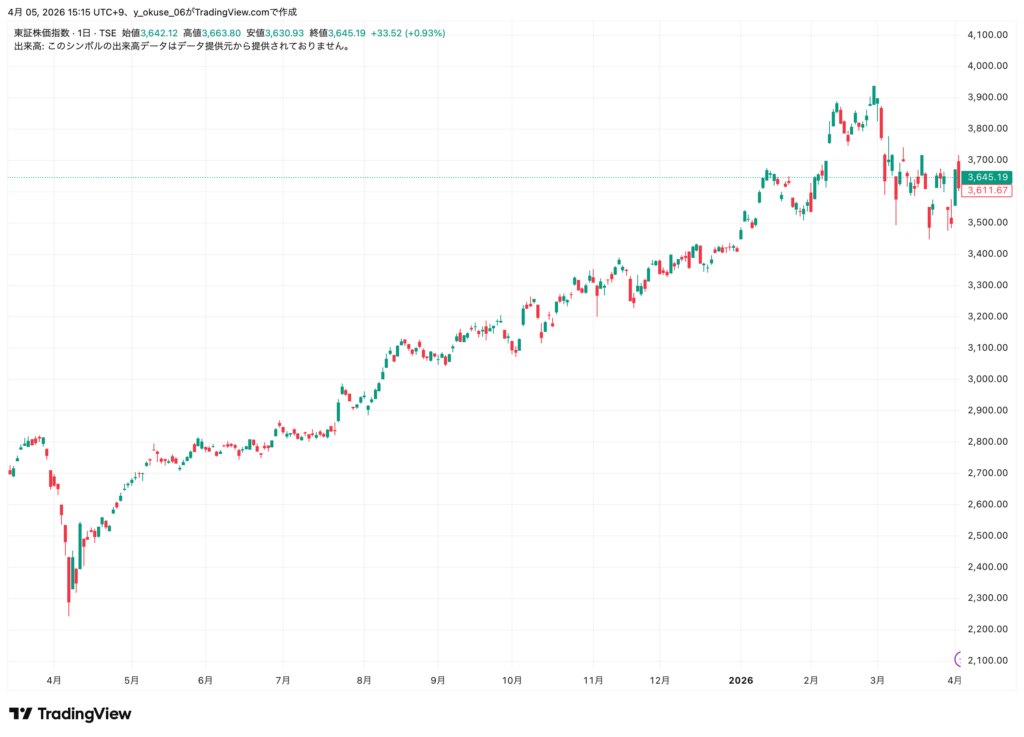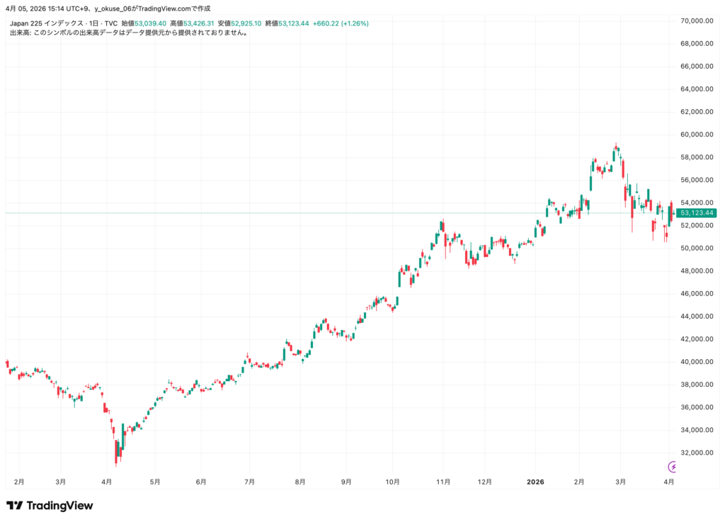 2月に歴史的な上昇を見せた日本株でしたが、3月は中東情勢の緊迫化などを背景に大幅な調整が入りました。「大きく上げれば、大きく下げることもある」——それが相場というものです。本記事では、今月の市場環境と資産状況を正直にお伝えします。