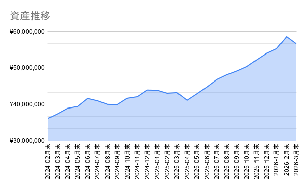 2026年3月末時点の総資産は56,577,625円となりました。